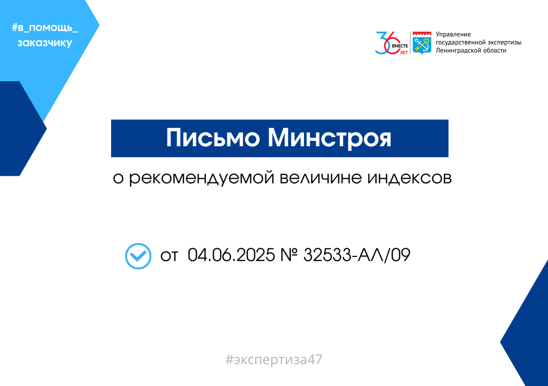 Письмо Минстроя России от 04.06.2025 № 32533-АЛ/09 «О рекомендуемой величине индексов изменения сметной стоимости строительства на II квартал 2025 года, в том числе величине индексов изменения сметной стоимости строительно-монтажных работ, индексов изменения сметной стоимости пусконаладочных работ».